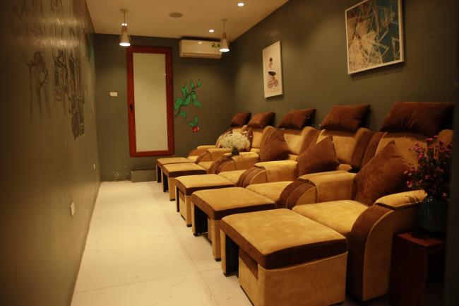 - Foot Massage: Use massage cream extracted from ginger to rub on 1/2 foot; Then the technician will use their hands to massage to help blood circulation, soften the muscles. It will help blood circulation reduce muscle pain, reduce stress, restore soft tissues damaged during exercise.
